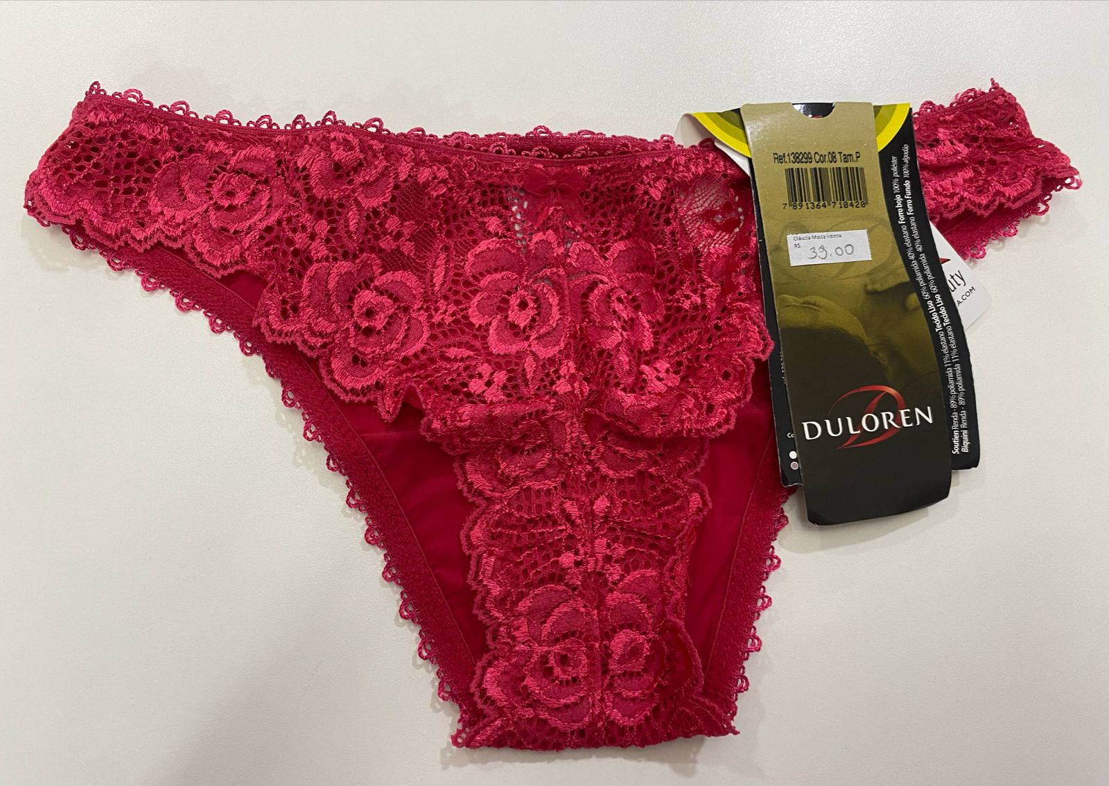 CALCINHA BIQUINI RENDADA DULOREN TAM: P REF. 138299 quantidade