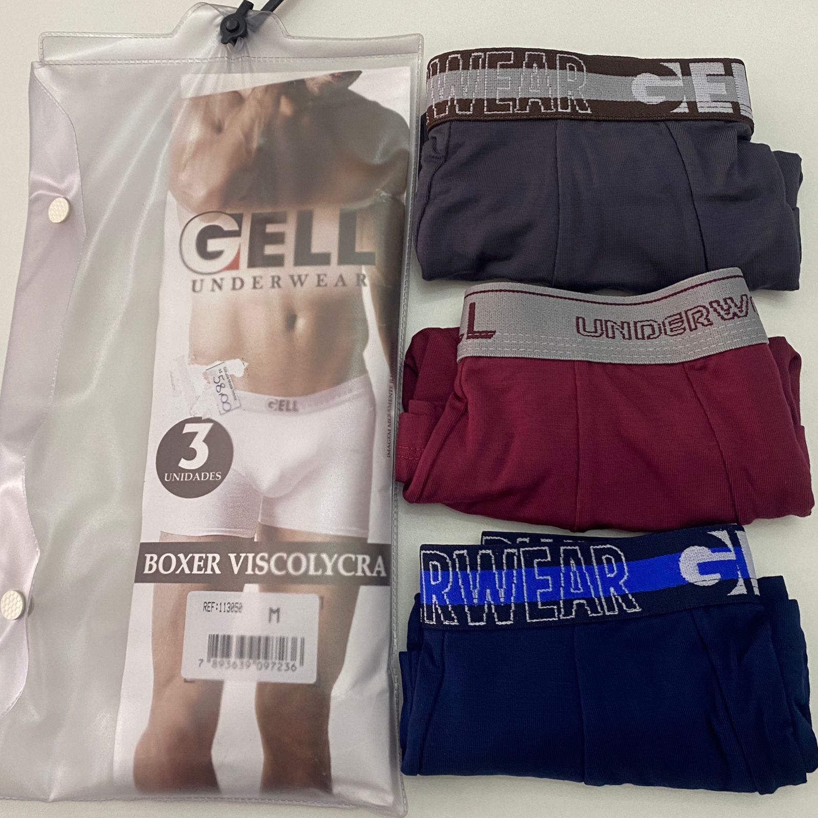 CUECA BOXER GELL, 3 UNID, TAM: M REF. REF. 113052 quantidade