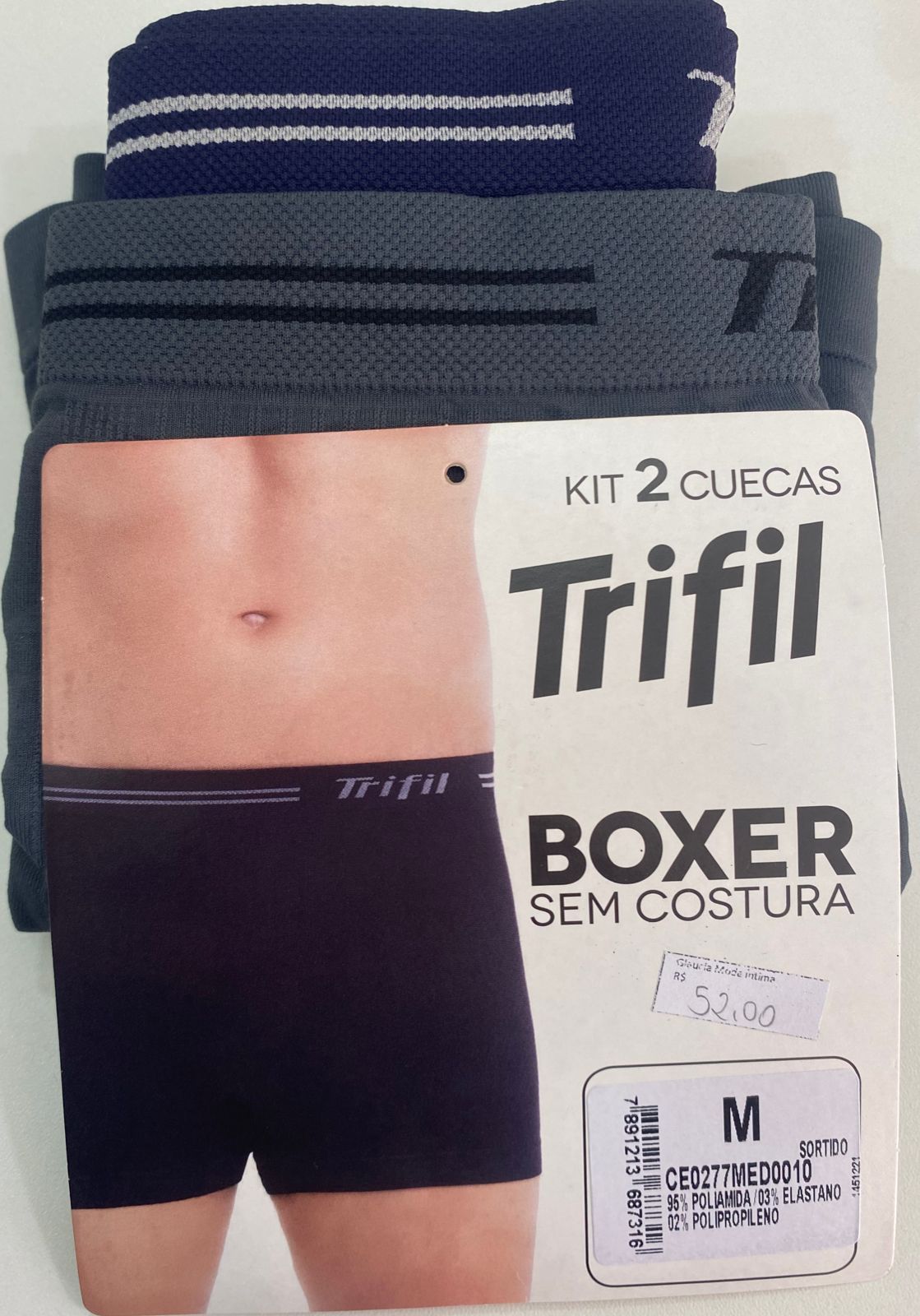 KIT 2 CUECAS BOXER S/COSTURA TAM: M TRIFIL REF. CE0277
