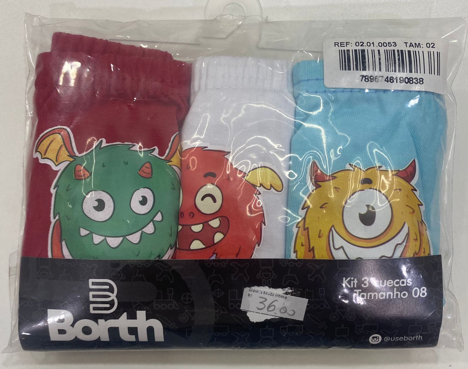 KIT 3 CUECAS INFANTIL TAM: 08, BORTH ref. 02.01.0053 quantidade